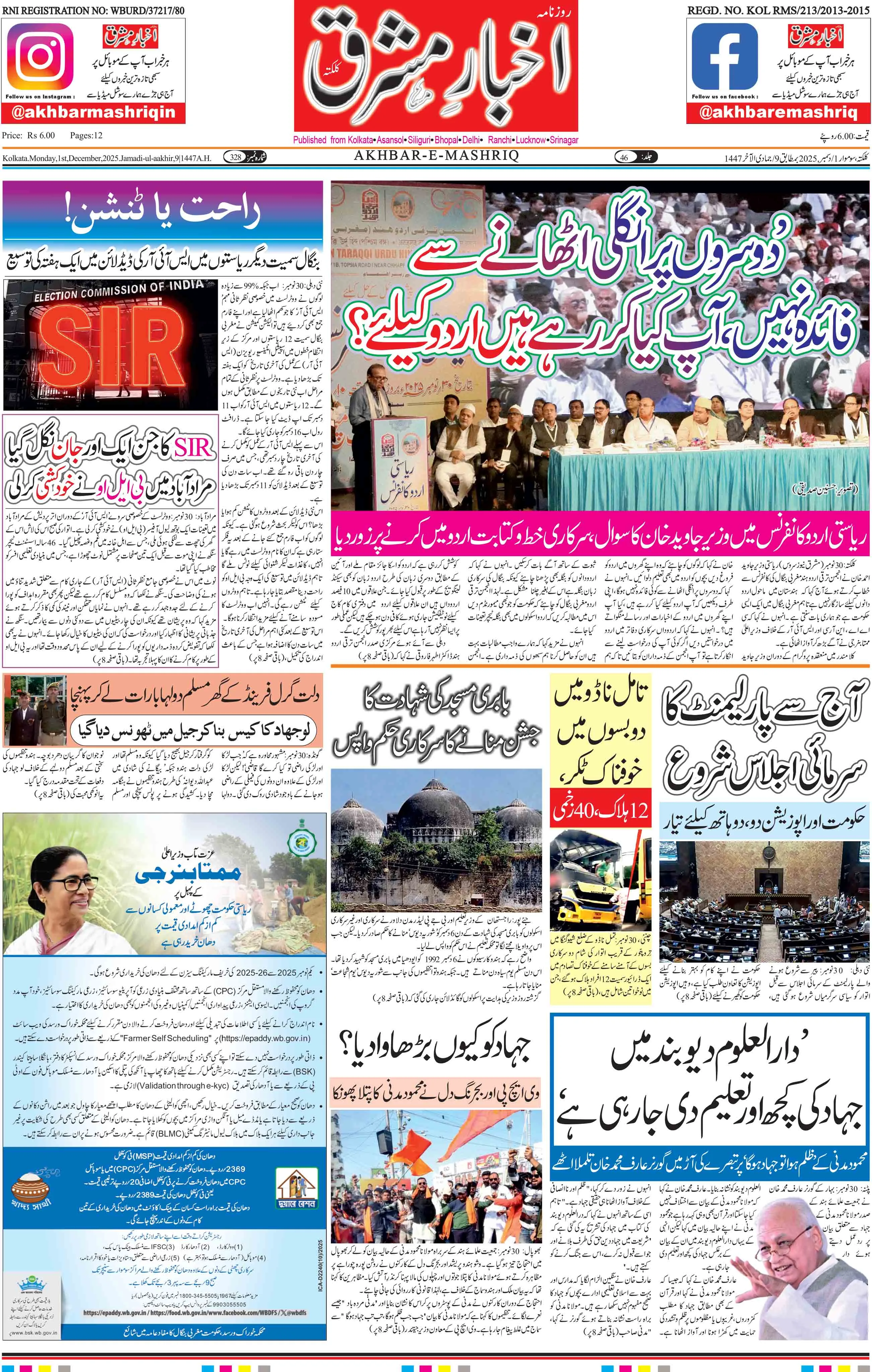 Akhbar-e Mashriq Urdu daily of Kolkata started its journalistic career twenty-five years ago when its first issue appeared on 25 April 1980.
