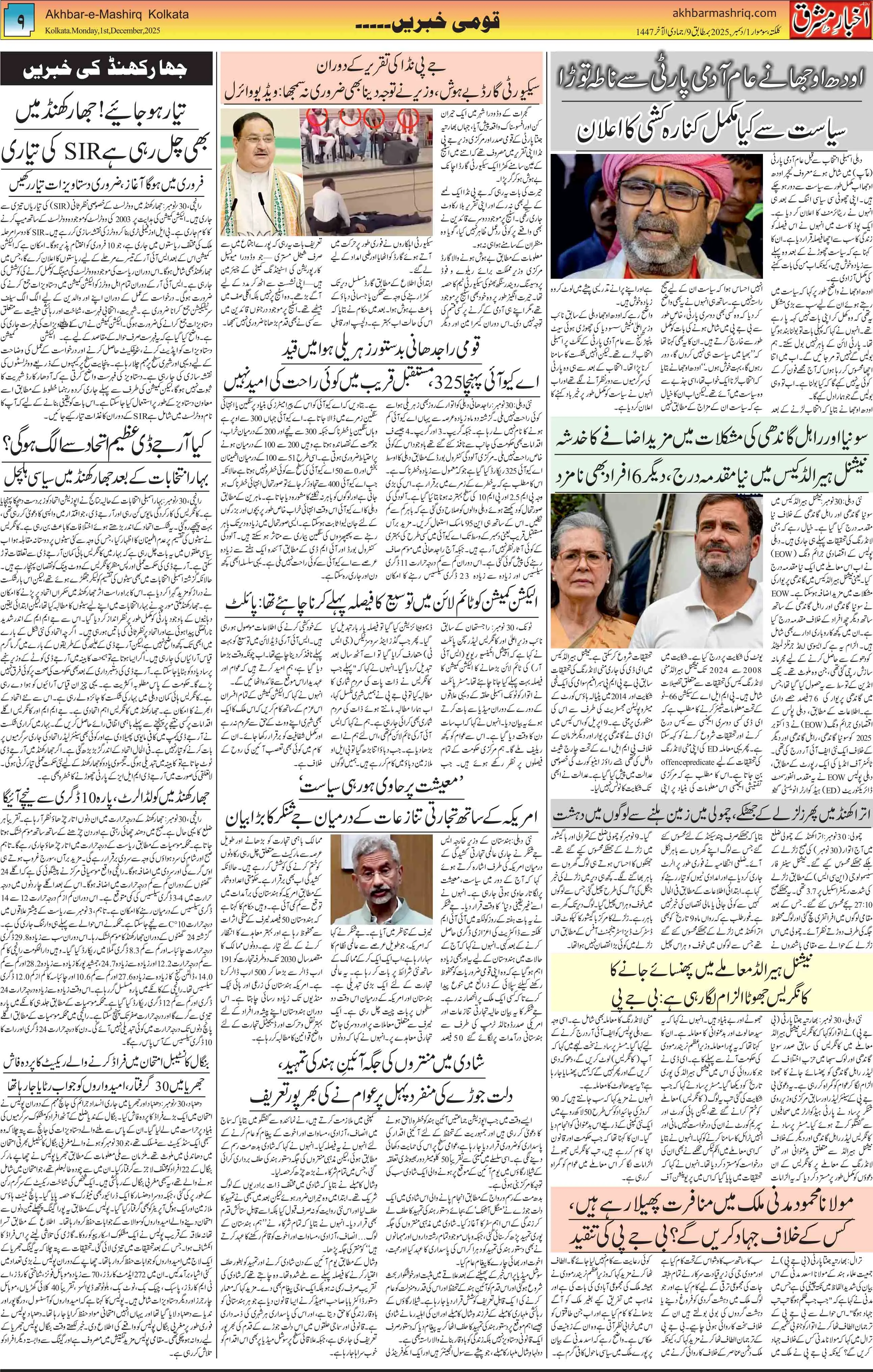 Akhbar-e Mashriq Urdu daily of Kolkata started its journalistic career twenty-five years ago when its first issue appeared on 25 April 1980.