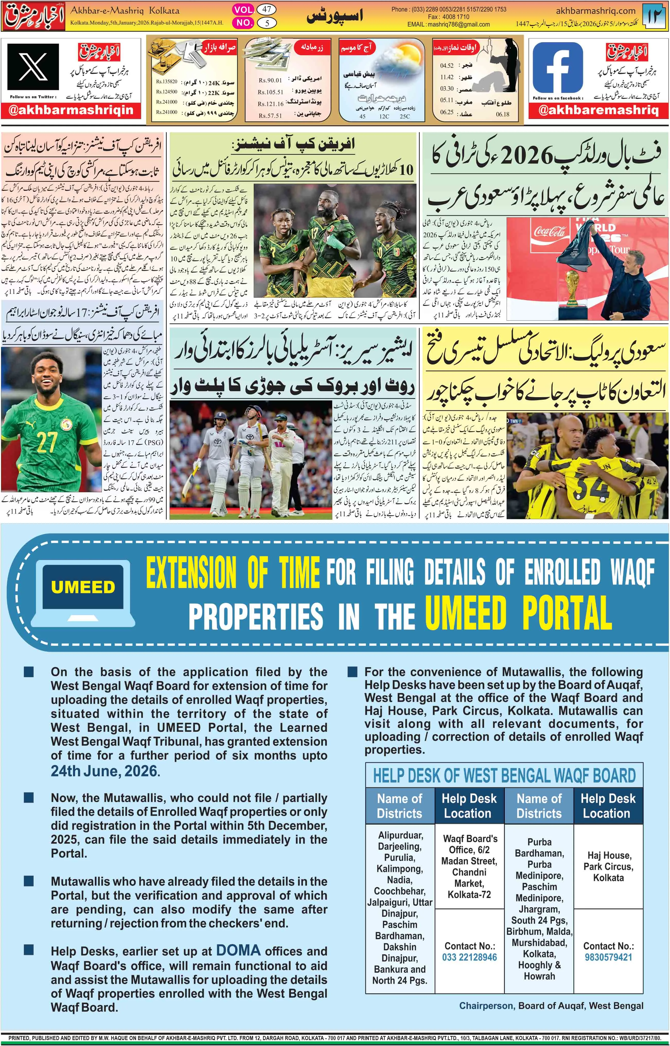 Akhbar-e Mashriq Urdu daily of Kolkata started its journalistic career twenty-five years ago when its first issue appeared on 25 April 1980.